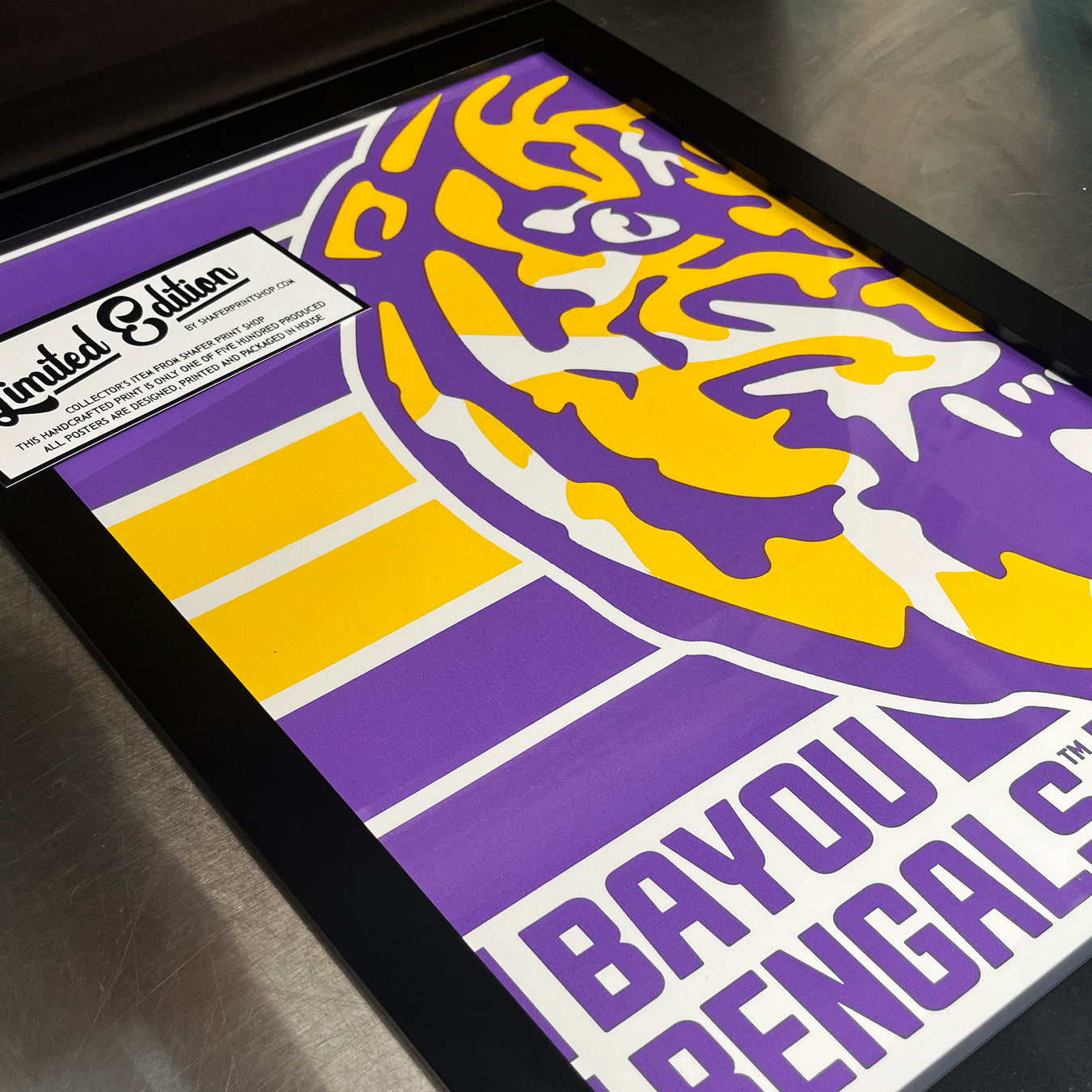 Handprinted in official LSU colors and perfect for the Tigers fans in your life.