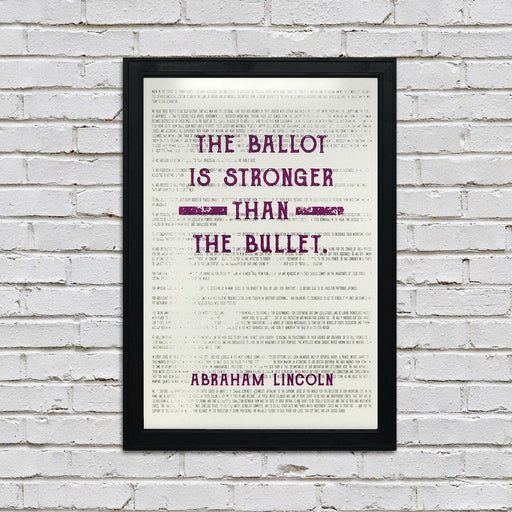 View full detailsLimited Edition Abraham Lincoln Ballot Stronger than Bullet Office Art Print Purple - 13x19"
