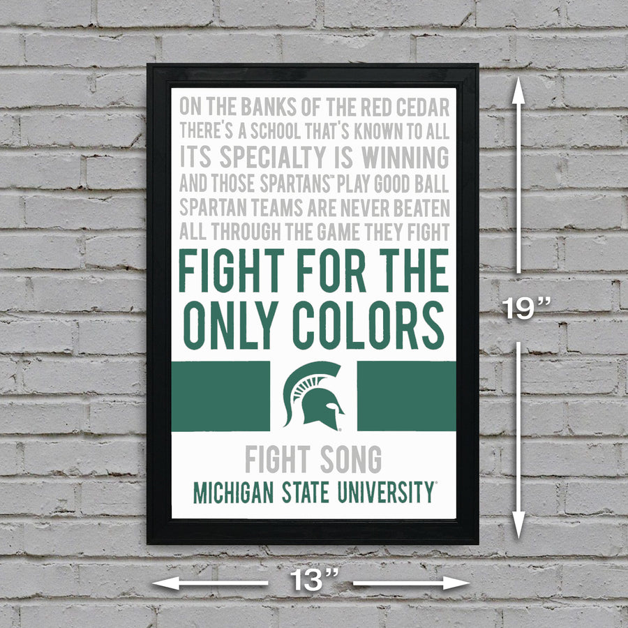 Fight for the Only Colors! The history and tradition of the Michigan St. Spartans fight song looks stunning on your wall and makes the perfect gift for the Spartan fan in your life.