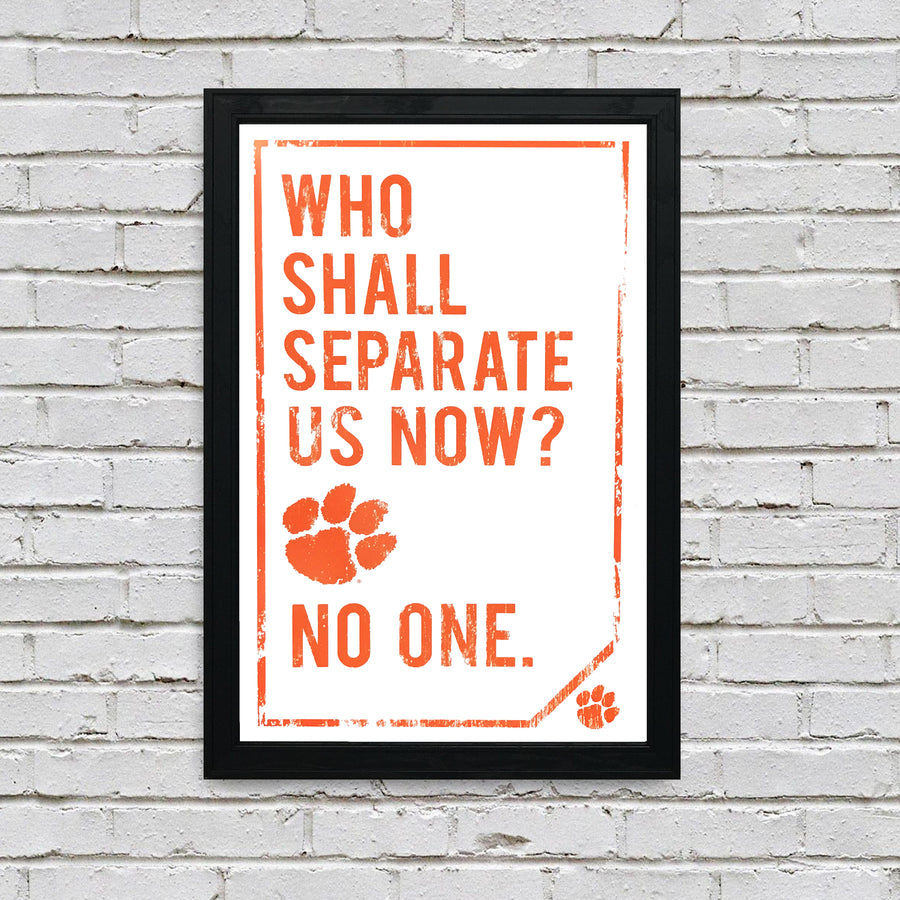 Limited Edition Clemson Tigers "Who Shall Separate Us Now" Poster Art - 13x19"