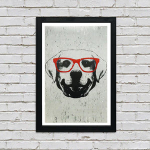 Limited Edition Labrador Retriever with Orange Glasses Art Print / Poster - 13x19"