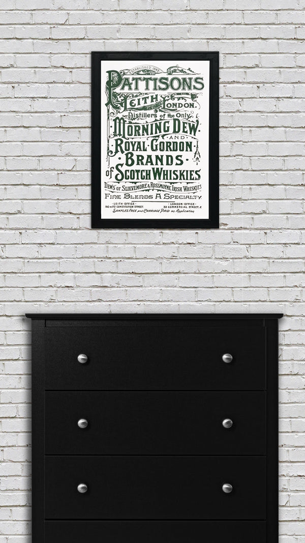 Limited Edition Pattison's Morning Dew Scotch and Whiskies Vintage Advertising Poster Art - Green - 13x19"