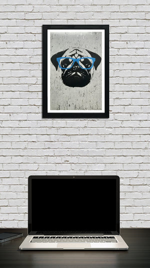 Limited Edition Pug Art Poster with Blue Glasses - 13x19"